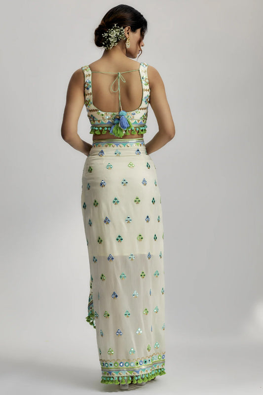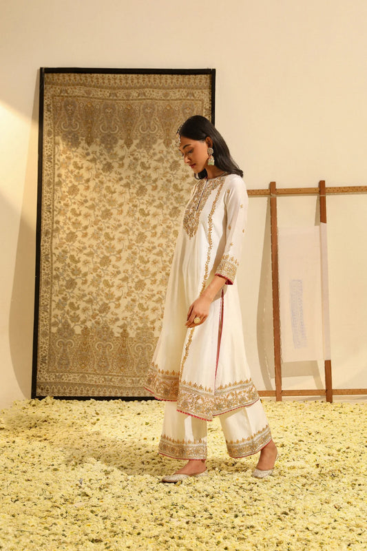 Shiza - Daisy Ivory Long kurta with palazzo and dupatta