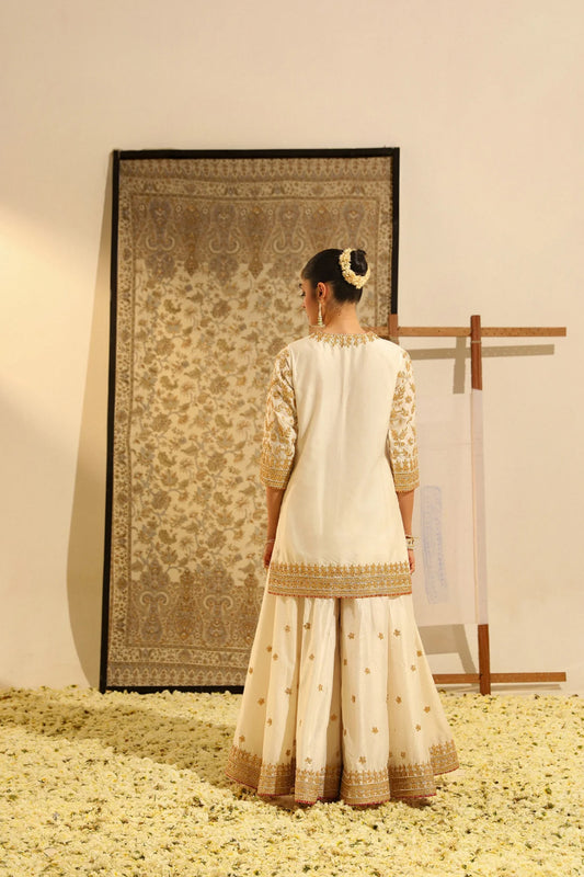 Suleman - Daisy Ivory Kurta with Sharara and Odhni