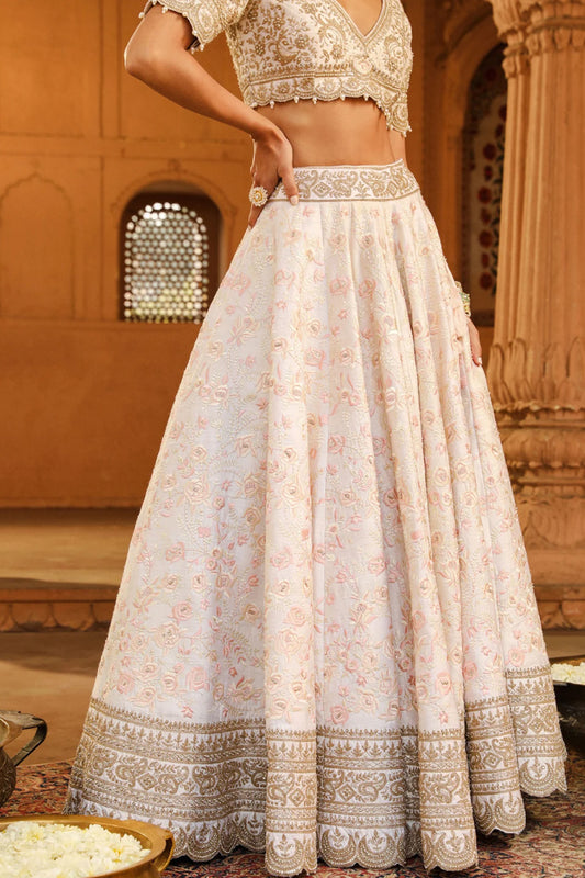 Aarif - Daisy Ivory Lehenga set with Odhni