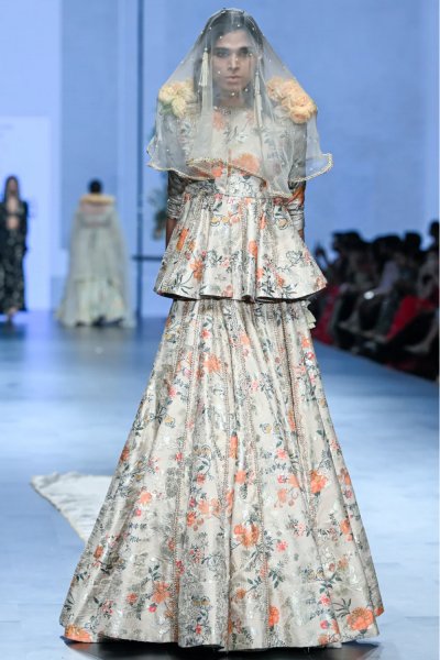 Yellow and Orange Floral Lehenga Set