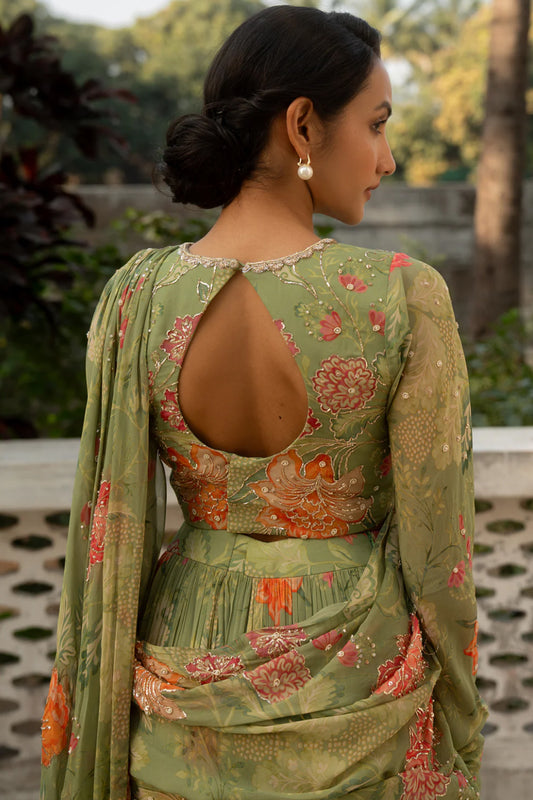 Blooming Multi-Colour Floral Printed Saree Set