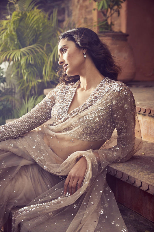 Coffee Sequins Saree