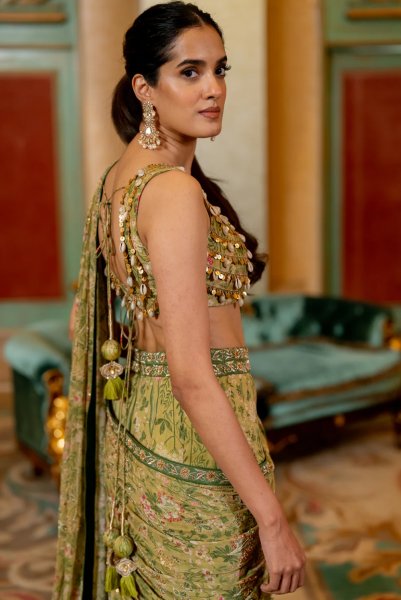 Sage Green Pre-draped saree