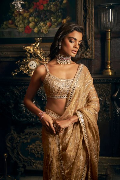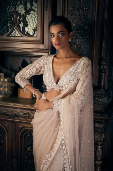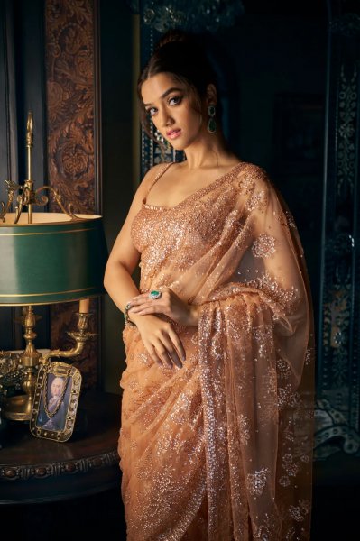 Nude Sequin Saree