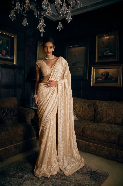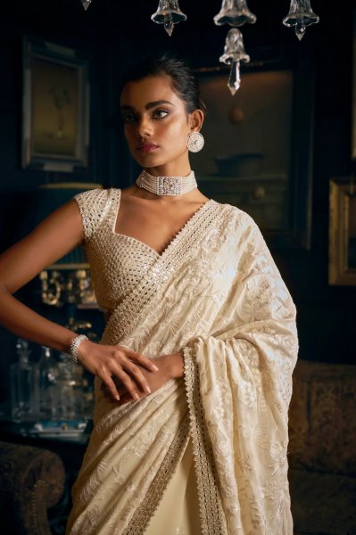 Ivory Thread Work Saree