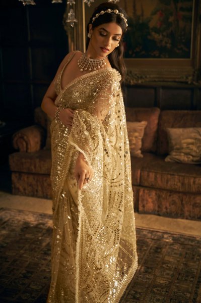 Gold Mirror Work Saree