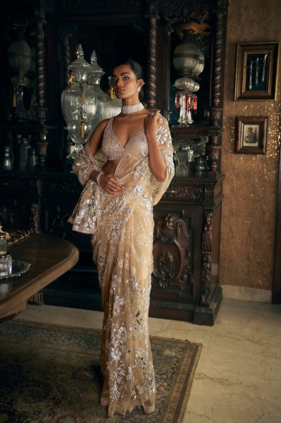 Nude Silver Applique Saree