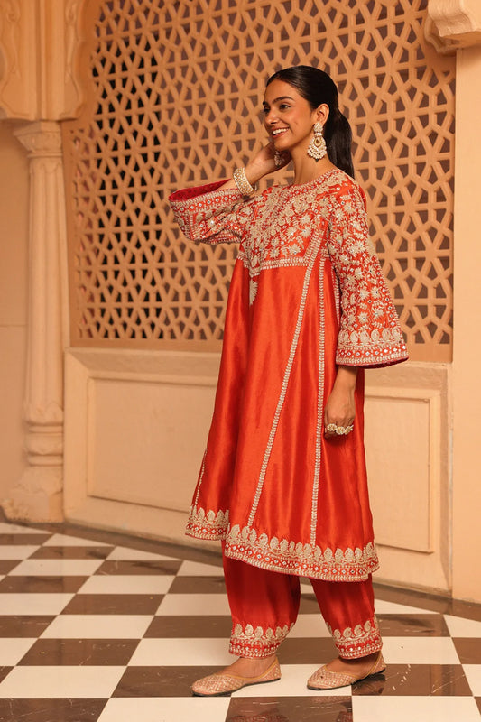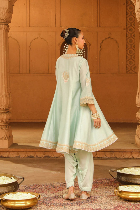 Aiman - Short Knee Length Choga with Salwar and Khada Dupatta