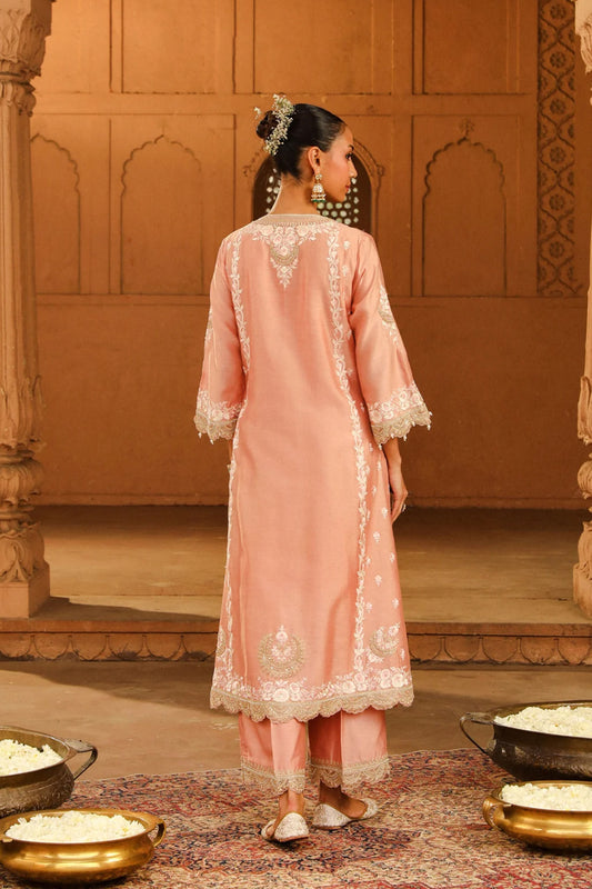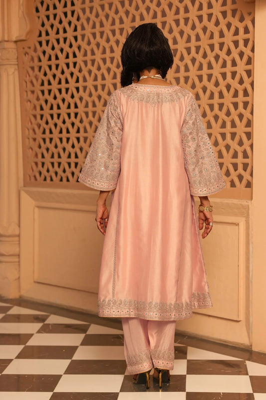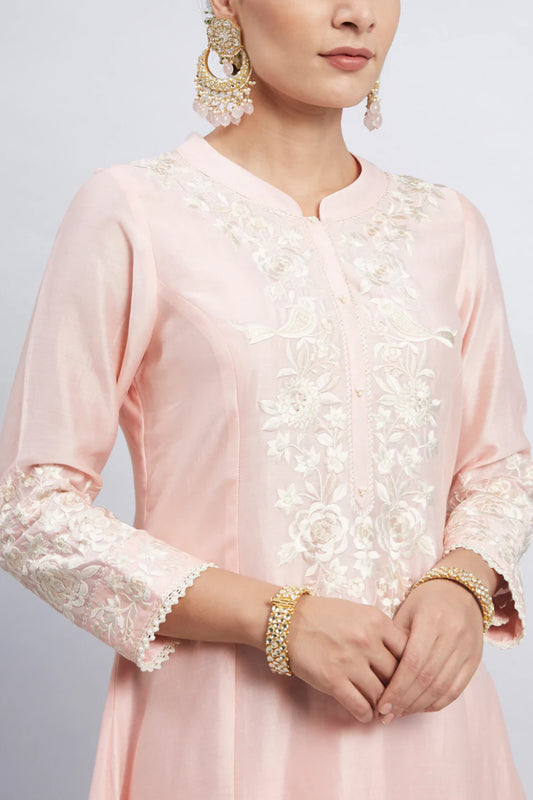 KAINA- SOFT PINK PURE CHANDERI SILK PARSI-GARA EMBROIDERED ENSEMBLE
