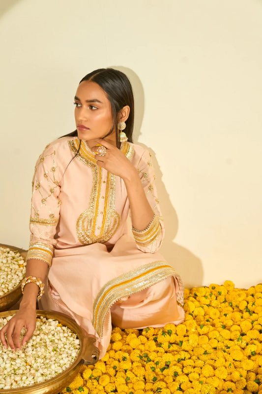SHAIMA STRAIGHT KURTA WITH SHARARA AND ODHNI