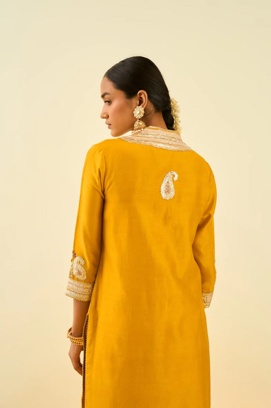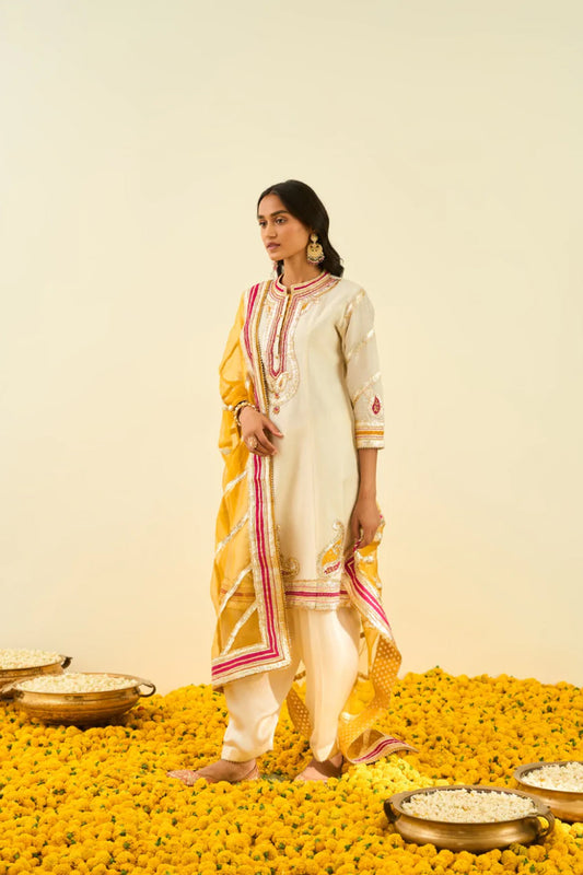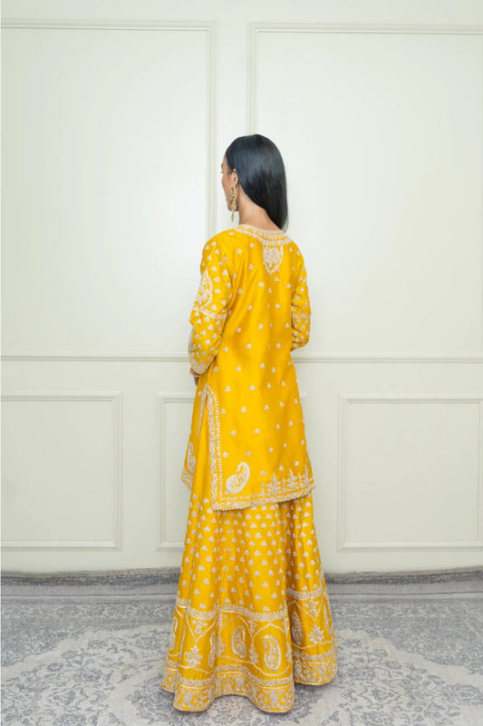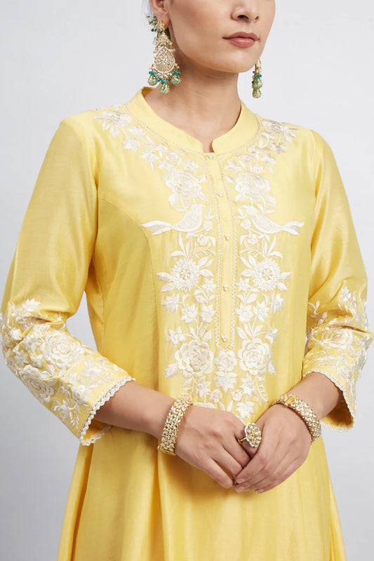 KAINA- DAFFODIL YELLOW PURE CHANDERI SILK EMBROIDERED ENSEMBLE