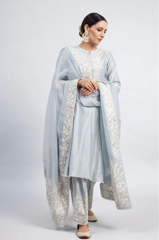 KAINA CHANDERI SILK PARSI-GARA EMBROIDERED ENSEMBLE